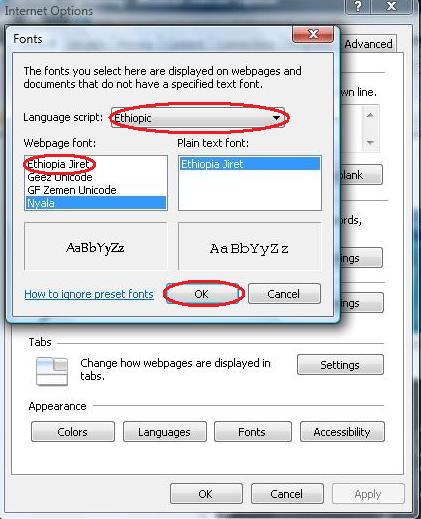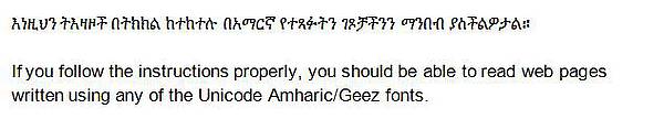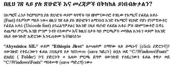 After installing the fonts, if you still cannot read the amharic fonts on our website, try restarting your computer. If that does not work, follow the instructions below.
