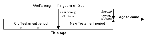 George Ladd, who we quoted above, has helpfully illustrated this powerful Old Testament and Jewish understanding of history with the following diagram, which shows how the Judaism of Jesus' day believed in what can be described as two ages; this age characterised by evil, sin and suffering, and the age to come, brought in when God's Kingdom comes in power.