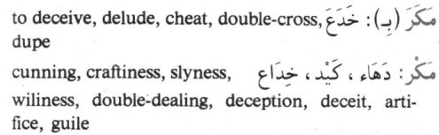 If one is still in doubt as to the meaning of the term "Makereen" consider Abu Bakr’s testimony to the deceptive character of Allah taken from the "Successors of the Messenger" by Khalid Muhammad Khalid, p. 70: