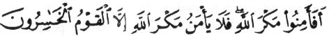 "Are they then secure from Allah's scheme (makr)? None deemeth himself secure from Allah's scheme (makr) save folk that perish." Surah 7:99 Pickthall