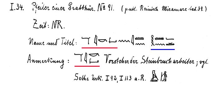 It is interesting to note that the profession of this person hmn-h(?) in German reads Vorsteherder Steinbruch arbeiter - "The chief / overseer of the workers in the stone-quarries" (Fig. 4). This name is listed as masculine (Fig. 5) and it is from the New Kingdom Period (Fig. 4).