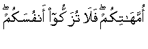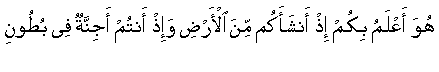 "�Dan Dia lebih mengetahui (tentang keadaan) mu ketika Dia menjadikan kamu dari tanah dan ketika kamu masih janin dalam perut ibumu; maka janganlah kamu mengatakan dirimu suci �" (QS. 53 An Najm - bintang - 32)