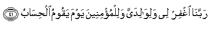 "Ya Tuhan kami, beri ampunlah aku dan kedua ibu bapaku dan sekalian orang orang mu'min pada hari tejadinya hisab." (QS. 14 Ibrahim 41)