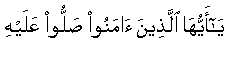 "sesungguhnya Allah dan malaikat malaikat-Nya bersolawat untuk nabi. Hai orang orang yang beriman hendaklah kamu memohon rahmat dan keselamatan untuk nabi dan ucapkanlah salam penghormatan kepadanya. (QS. 33 Al Ahzaab - golongan yang bersekutu -56)
