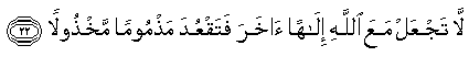 "Janganlah kamu adakan Tuhan lain selain Allah,agar kamu tidak tercela dan tidak ditinggalkan (Allah). (QS.17 Al Israa'-perjalanan malam hari-22)