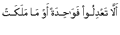" … Kawinilah wanita wanita yang kamu senangi, dua, tiga atau empat, jika kemudian kamu tidak dapat berlaku adil, maka kawinilah seorang saja, atau budak budak yang mereka miliki." (QS. 4 An Nisaa -wanita- 3)