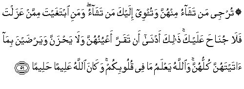 (QS. 33 Al Ahzaab -golongan yang bersekutu- 51)Juga disokong oleh hadits:
