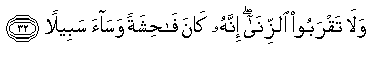 "Dan janganlah kamu mendekati zina, sesungguhnya zina itu adalah suatu perbuatan yang keji. Dan suatu jalan yang buruk"