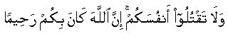 "…. Janganlah kamu membunuh dirimu sendiri, sesungguhnya Allah maha penyayang kepadamu."