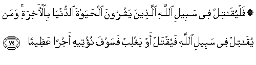 "Maka hendaklah berperang di jalan Allah orang orang yang menukar kehidupan dunia dengan kehidupan akhirat …."