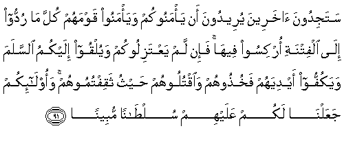 (QS. 4 An Nisaa -wanita- 91)Isa tidak dibunuh melainkan diangkat (QS. 4 An Nisaa -wanita- 157-158)