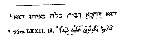passage from the Berachoth shows this "The press in the school is caused by them, the demons."1 With this we may compare the Quran "When the servant of God stood up to invoke Him, it wanted little but that the genii had pressed on him in crowds."2 It cannot be maintained that the greater part of the teaching about genii was adopted from Judaism, it must rather be said to have come from the same dark source whence the Jews of those times drew these conceptions, viz., Parseeism.