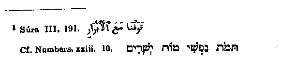 Death with the righteous is to be prized, hence the request in the Quran: "Make us to die with the righteous,"1 which corresponds with that of Balaam, "Let me die the death of the righteous.
