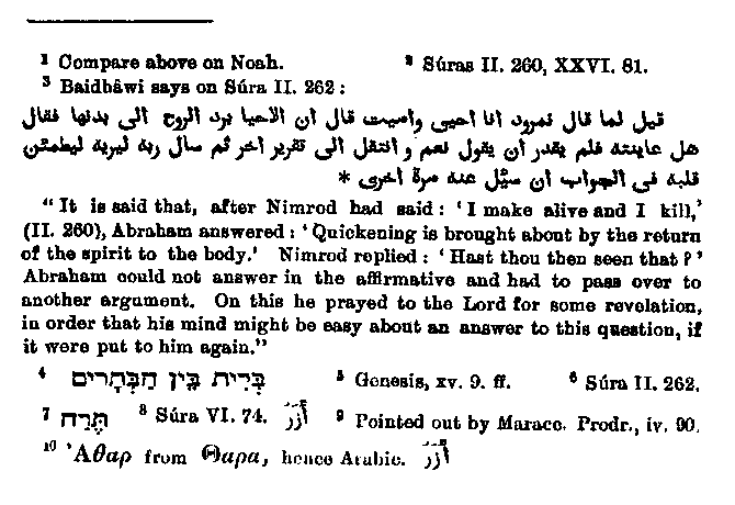 He was convinced throngh the fact that the divided birds came together again and became living,6 a view which is foreign to Judaism. How Muhammad came to call Abraham's father, (whose name is given in the Bible as Terah7) Azar8 is at first sight not clear, but is completely explained when we consider the source9 of his information, namely Eusebius. In his Church History, Eusebius calls him Athar10 which is an easy transition from Thara,