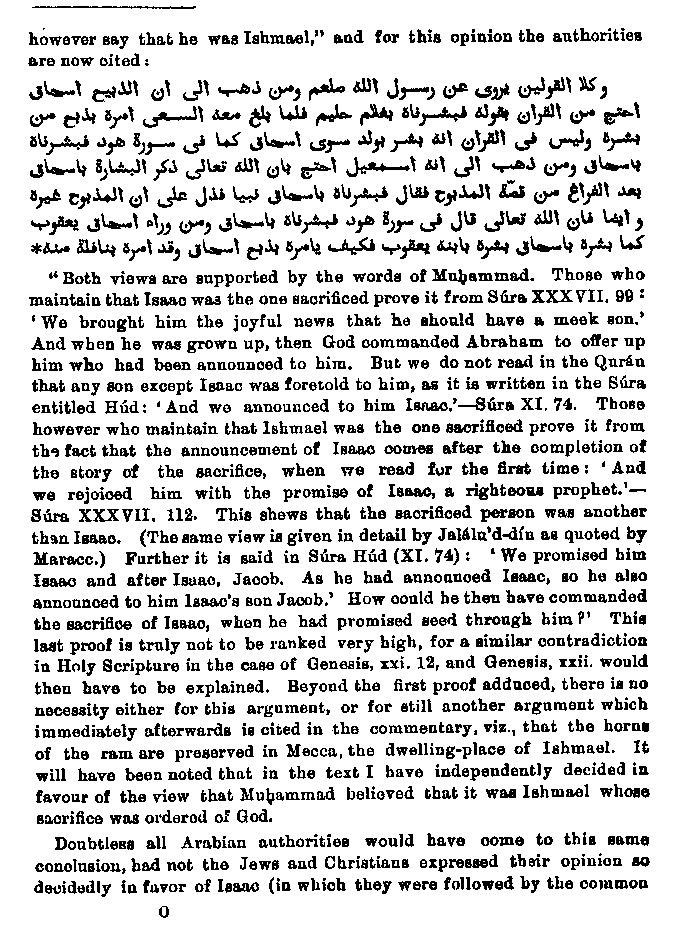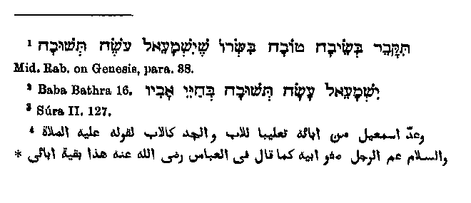 It has already been remarked that, according to Muhammad�s showing, Ishmael* was the son whom Abraham was