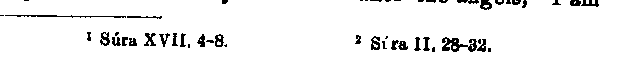 view, and was determined to make every thing accord with his ideas. In another place he goes so far as to interpolate a verse into Noah's discourse, which is entirely characteristic of his own, and in which the little word (translated "speak")1 actually occurs, which is always regarded as a word of address to Muhammad from God (or Gabriel). The same thing will be noted further on in the case of Abraham.