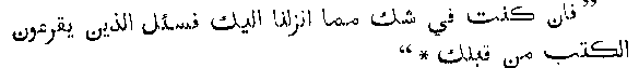 Let the reader, ere he closes this little book, consider carefully the Quranic passage which adorns the title page. It is there written, "Ask those who are acquainted with the scripture, if ye know not." Then is it not your highest wisdom, O Muhammadan reader, to follow this teaching of the Quran, and seek in the Gospels the way of eternal life? Not only are Muslims in general thus advised to seek a solution of their doubts by a reference to Christians; but the Quran pictures Muhammad himself as receiving the same admonition. In Sura Jonas, verse 92, it is written,
