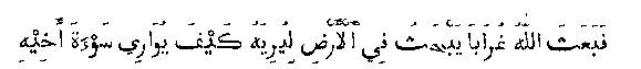 In Suratu'l-Ma'ida (v.30-35) there is a curious story connected with Cain and Abel. It is there (verse 34) related that, after Cain had killed his brother,