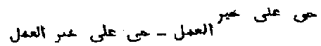 Haaya 'ala khairi 'l-'amali! Haaya 'ala khairi 'l-'amali! "Come to the best or works! Come to the best of works!" and by repeating the last sentence of the Azan, "There is no god but God," twice instead of once, as in the Sunni Azan.