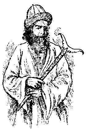 The darwashes carry about with them one another of the following articles; a small crooked stick of iron, which the devotee places under his arm-pit or forehead, to lean upon when he meditates or an iron or brass bar on which there is a little artificial hand wherewith to scratch his unwashed body, a bag made of lamb-skin, a kashkul or beggar's wallet.