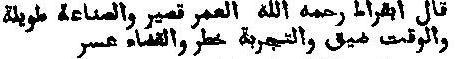 Wa 'l-waqtu zaiyiqun wa 't-tairibatu khatirun wa 'l-qaza u 'asrin.