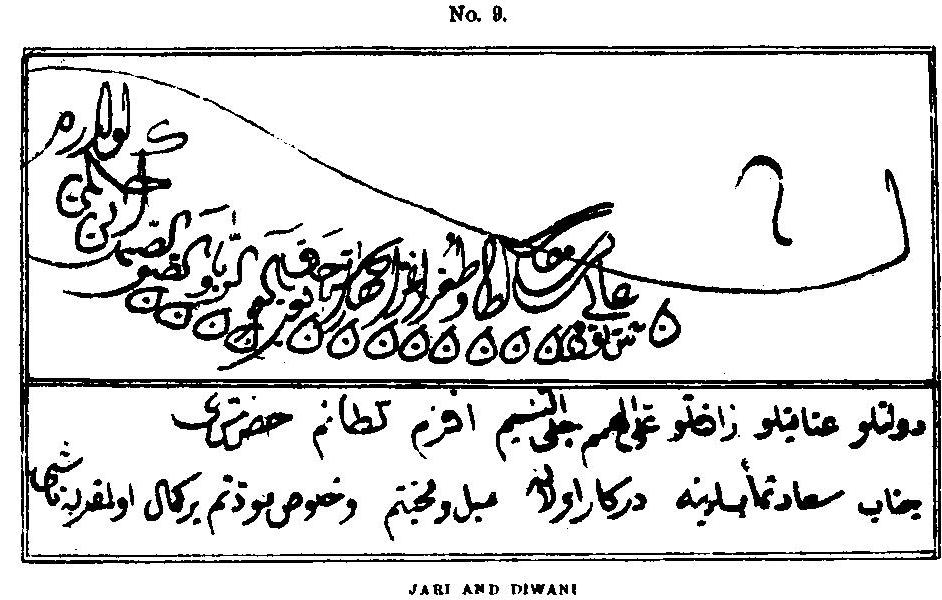 Allah, "God," and it would therefore be considered irreverential towards the Deity to write it beneath the other Letters. As a feature common to this division of the Eastern Arabic manuscript style, we lastly point out the inclination of the characters from the left to the right, in contradistinction both to