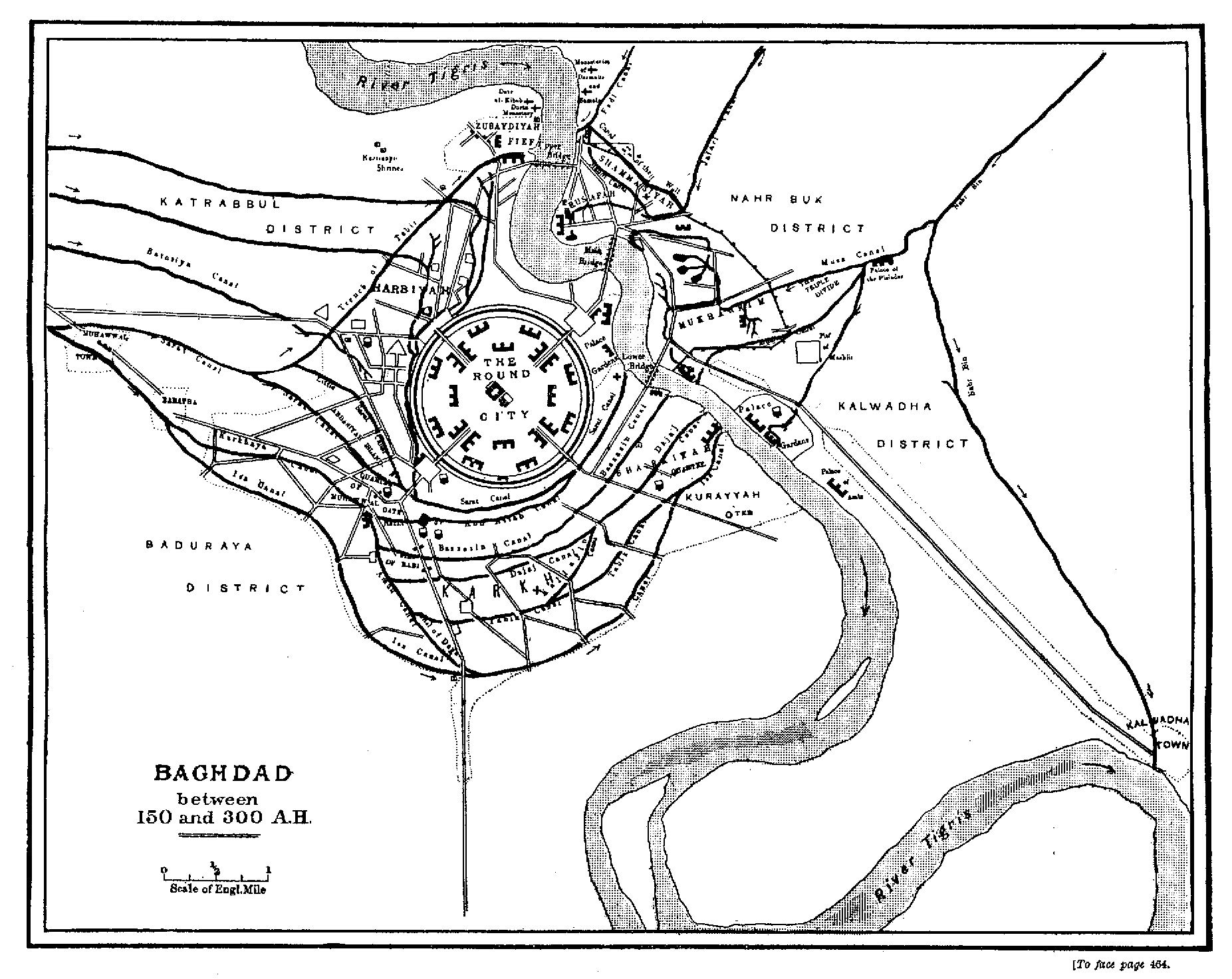 Lying on the west bank of the Tigris, with deep canals in rear, and ready access to the Persian Gulf,&151;as well as to Arabia, Syria, Armenia, and the East,Bagdad, besides holding Al-Kufa, Wasit, and Al-Basra, in immediate check was admirably situated as the heart of the Empire. The eastern shore, more open to attack, was provided with accommodation for a large force, which was thus further cut off from the heated influence of Al-Kufa and Al-Basra. Separate cantonments were here also planted for the Yemen and for the Modar clans, as well as for the Khorasan levies. While there was safety in the diverse interests of the three it was to the Khorasan levies that Al-Mansur mainly looked for his own protection; and also as a countervailing power to lower the pretensions of the Arab soldiery, who still lorded it over the nations as the flower and chivalry of Islam; and in this unwise design the 'Abbasids (as already noticed) too soon succeeded, and too well.