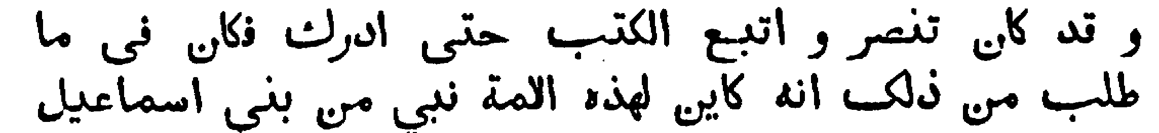 thou survivest to see him; then repeat to him a salutation front me. Now shall I describe to thee his appearance, that he may not remain hid from thee? Amir said, "Do so. Then follows Zeid's description of the person of the coming prophet, his rejection by the Meccans, his emigration to Yathreb, and his final victory. Take heed - proceeded the prophetic sage - lest thou be deceived in him, for I have visited every city in search of the Faith of Abraham, and every one of the Jews and Christians and Magians say that this religion is about to follow, and they seek for the same signs as I have given unto thee, and they say there will no 'more be any prophet after him. "So," continued Amir, "when I was converted, I told the prophet the saying of Zeid, and I recited his salutation: and the prophet returned his salutation, and prayed for mercy upon him; and said, I have seen him in Paradise", &C (p. 83.) It is easy to trace here the fabricated elements, with all their spurious detail, which grew up between the times of Wackidi and Tabari.