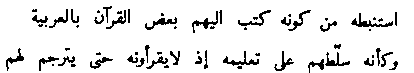 A later commentator adopts the same argument, though he draws a different conclusion. "If you argue that the Messenger of God was not sent to the Arabs alone," he says, "but to all mankind ... who speak different languages, so that if the Arabs could not make any plea (of ignorance) others could, then I would say this: Either (the revelation) could have been sent in all the tongues or in one of them. But there was no need for it to be revealed in all languages, since translation (tarjamah) makes up for that ... It remains for it to be revealed in one tongue, and the worthiest was, of course, that of the people of the Messenger ... who, once they comprehended (the revelation) from him, would transmit it and spread it, with translations (tarajim) to explain it as it is witnessed in the use of substitute translations by the non-Arab nations ..."35