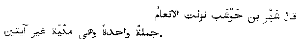 (----) im Reim, in den Anmerkungen zu His. S. 219 lin. 5 dieselbe kommt außerhalb des Reimes in einem Gedichte aus der Zeit Mu'awiya's vor, Aghani ed. Bulaq Bd. XIlI, S. 167,27. Über die verschiedenen Aussprachen des Wortes handeln ausführlich Tabari, Tafsir 1. 328 f. und Baidawi zu Sur. 2,91. Auch Tulaiha hatte seinen