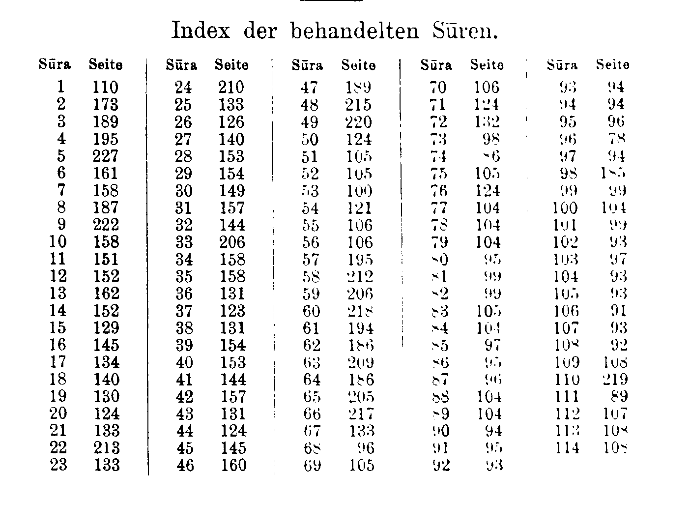 | Hilfsmittel zur chronologischen Bestimmung der Suren. Überlieferte chronologischen Listen derselben ...... S.58-65 |