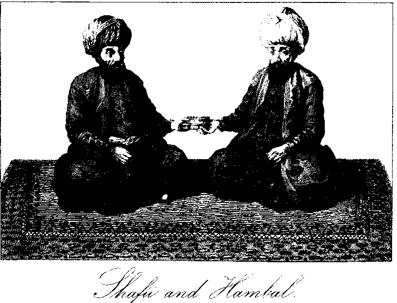 The author of the third orthodox sect was Ash Shafii, born either at Gaza or Askalon, in Palestine, in the year of the Hijra 150 (A.D. 767), the same day that Abu Hanifa died ; but he was carried to Mecca at two years of age, and there educated. After a while he repaired to Madina, where he pursued his studies under the direction of Ibn Malik, who was so pleased with the diligence and zeal displayed by the student, that he addressed to the latter these encouraging words: "Have confidence in God, thou wilt soon become renowned; God hath placed in thy heart a flame, quench it not with sin." A few years before his death, which occurred A.H. 204 (A.D. 819), he went to Egypt, where his fame was so great that on one occasion no less than 900 carriages were drawn up outside his door, the occupants being engaged in listening to the words of wisdom which fell from the learned theologian's mouth. This doctor is celebrated for his excellency in all parts of learning was much esteemed by Ibn Hambal his who used to say that "he was as the sun and as health to the body." The latter, an opinion of Ash Shafii his scholars to go near him; but some time after, one of them meeting his master trudging on foot after the excommunicated doctor, who rode on a mule, asked Ibn Hanbal how it came about that he forbad them to follow a person and yet did it himself? to which the man of God replied, "Hold thy peace; if thou but attend his mule thou wilt profit thereby."