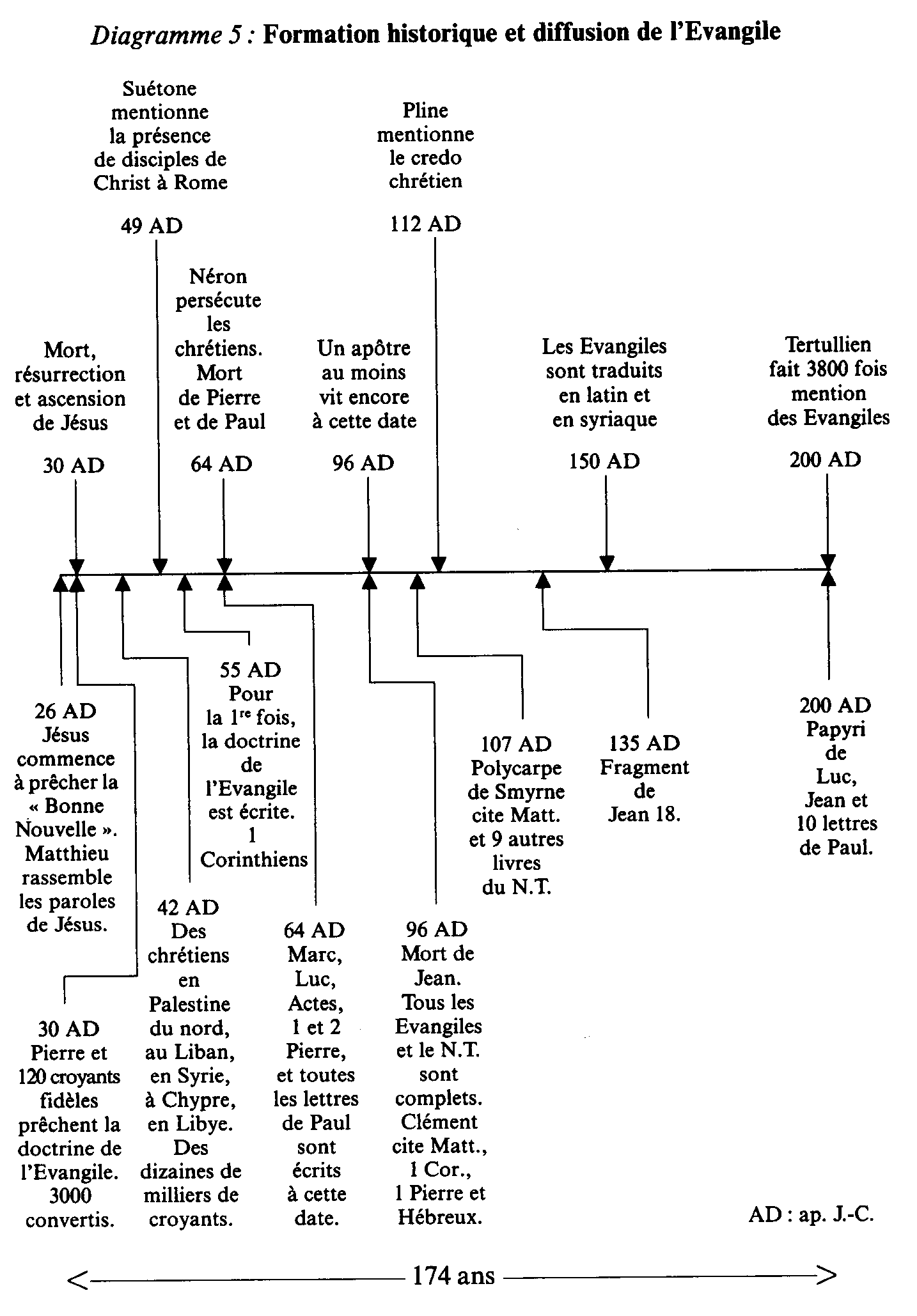 chair et il a habité parmi nous" (Jean 1.14). Diagramme présentant ma formation et la diffusion de l'Evangile En résumé, nous pouvons dire que dès l'an 200, l'Evangile de Jésus le Messie, tel que nous le possédons aujourd'hui, était connu dans tout l'Empire romain. Le diagramme suivant présente simplement, et dans ses grandes lignes, la formation et la diffusion de l'Evangile. Ce diagramme fait le pendant à celui que nous avons établi pour le Coran.