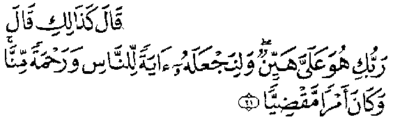 Il dit: "C'est ainsi: Ton Seigneur a dit: "Cela est facile pour moi." Nous ferons de lui un signe pour les hommes; une miséricorde venue de nous. Le décret est irrévocable" (Sourate Maryam - Marie 19,21, cf. Sourate 21,91). Quoiqu'il ait affirmé d'autre à propos de Jésus, le Coran le présente d'une manière certaine comme un personnage unique. En effet, dans sa relation avec Dieu, il apparaît comme Parole de Dieu et Esprit de Dieu; en outre sont uniques ses activités créatrices, ses guérisons, ses miracles de résurrection (Sourate al 'Imrân, La Famille de 'Imrân 3,49), son ascension au ciel et sa présence au ciel aujourd'hui. Au travers des études ultérieures, je commençais aussi à comprendre en quoi la signification biblique de l'expression "Fils de Dieu" diffère de la compréhension coranique. Le Coran nie que Dieu ait engendré, au sens physique (Lam yalid wa lam yulad). Dans ce sens-là, la Bible aussi rejette l'expression "Fils de Dieu". Toutefois, il m'était possible d'accepter et de comprendre l'attribut "Fils de Dieu" (que donne la Bible) pour Jésus, à condition de le prendre au sens spirituel, de la même manière que je comprends l'attribut "Parole de Dieu". Là encore, j'étais reconnaissant au Coran de servir de pont pour une compréhension plus complète de la signification biblique de l'expression "Fils de Dieu" lorsqu'elle désigne Jésus. C'est sans nul doute sur la base de la sourate "al-Nissa'" que les musulmans ont rejeté le récit biblique de la mort, de la résurrection et de l'ascension de Jésus: