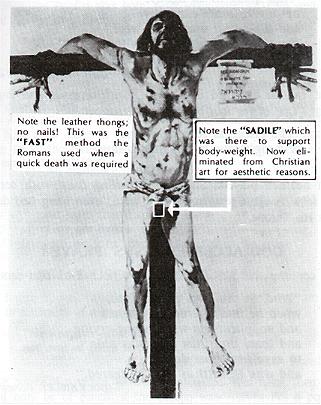 Contrary to common belief, Jesus was not nailed to the cross, but bound, if at all, like the other two (being crucified). (ch. 7, p. 31)