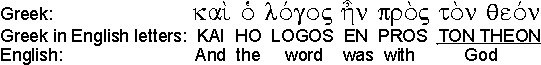 Next, Deedat says that the second occurrence for God is TONTHEOS.