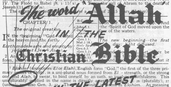 The Rev. C. I. Scofield, D. D. with a team of 8 Consulting Editors, also all D.D.�s in the "Scofield Reference Bible" thought it appropriate to spell the Hebrew word "Elah" (meaning God) alternatively as "Alah" The Christians had thus swallowed the camel � they seemed to have accepted at last that the name of God is Allah � but were still straining at the gnat by spelling Allah with one "L"! (Photographic reproduction of the Bible page showing the word "ALAH" is preserved here for posterity below). ...