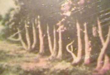 The branches of the trees lining a path distributed in the shape of declaration of the Islamic creed in the Arabic language that affirms the Oneness of Allah and the Prophethood of Muhammad (PBUH). It reads
