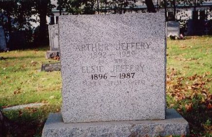 I was doing some genealogy research recently and came upon your articles about Dr. Jeffery. I want to add these comments to your information about him. Dr. Jeffery and his wife Elsie were regular summer visitors to a summer resort in Nova Scotia Canada in the 1950�s. One summer while vacationing there Dr. Jeffery took ill and later died. Mrs. Jeffery decided that he should be buried here and my parents, and now I, have tended his stone in the cemetery ever since. I don�t recall that Mrs. Jeffery ever came back, but every year a cheque would arrive for flowers and my father would buy them and place them on the grave. I believe that Mrs. Jeffery had been living in Italy but am not positive. Eventually she passed away and she is buried here as well.