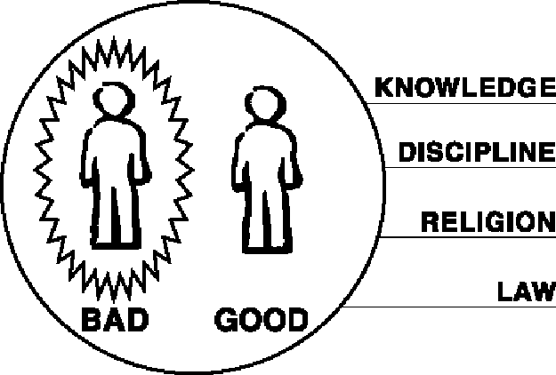 Conhecimento, disciplina, religião e a lei podem adicionar muito às nossas vidas. Todas essas soluções tentam frear os maus atos, mas elas jamais conseguirão reviver a bondade em nós. Elas são apenas influências externas. Quando paramos de nos concentrar no controle do mau que está em nós, nós sucumbimos às suas influências novamente.