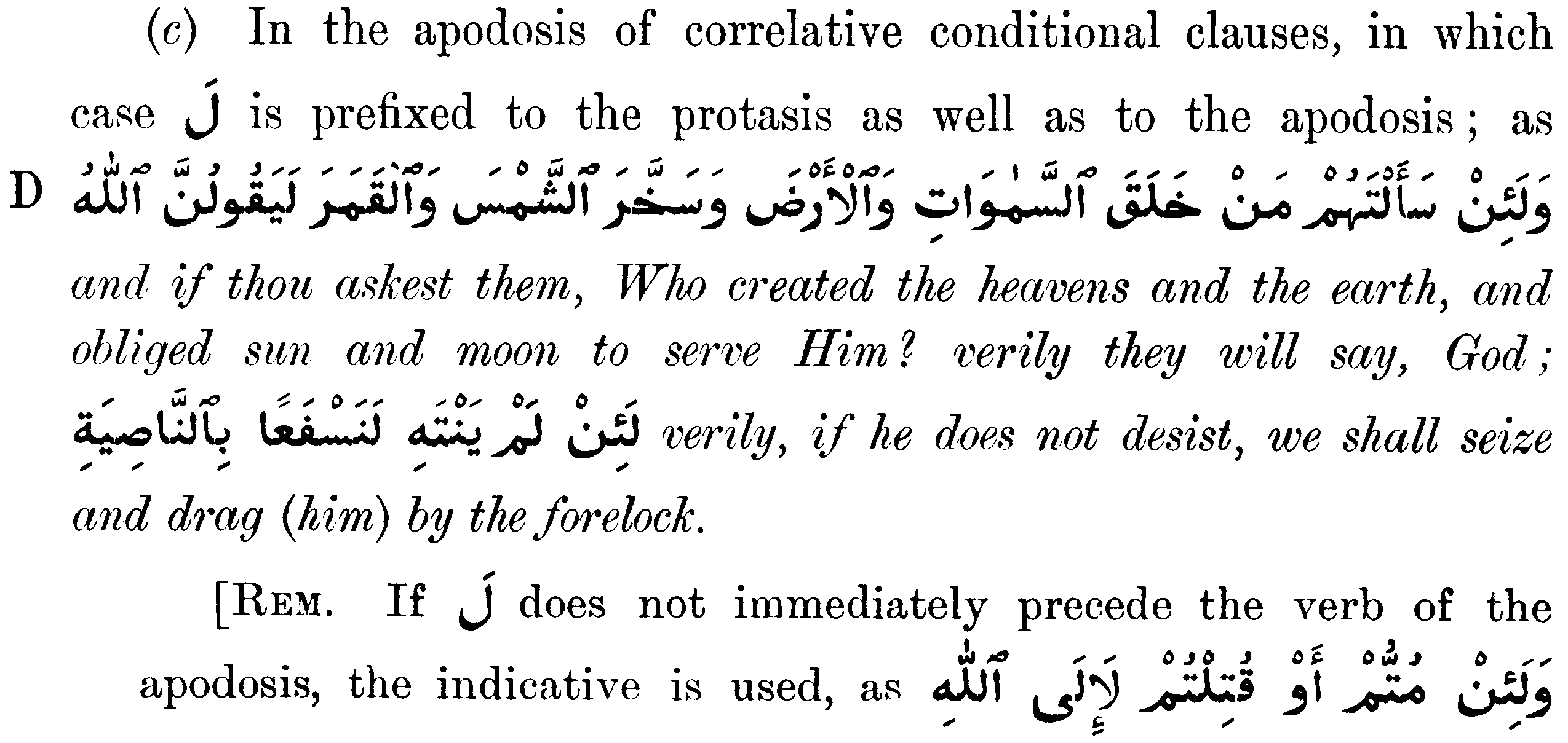 This grammatical construction leaves no alternative but that Q3:158 with the extra alif be translated "and certainly if you die or are slain, to God you shall NOT be gathered".