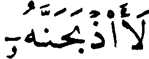 Yet they are not alone, for this means that all scholars who declared the uncorrected text should say "I shall indeed slaughter him" in fact need to ‘doctor’ the text to make it say something that it obviously shouldn’t. Indeed, what exists in most modern printed texts ( ) this is from the 1924 Egyptian Edition), is then a manipulation of the text to say ‘certainly’. The single unwanted alif is ‘silenced’ [note the ‘otiose’ "sign of silence" above the unwanted alif in the 1924 Egyptian