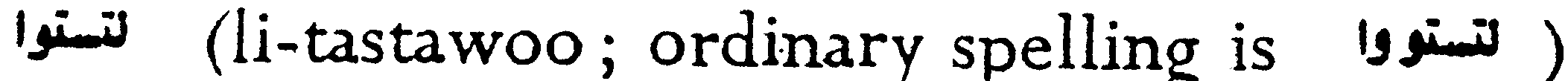 Hamidullah too writes of this. After writing about the extra consonant ya in biyyadin, he writes of what he terms this "one case" of a consonant missing in the Qur’an (!): "In consonants also there is a case, but just the contrary one; the Qur’anic orthography In the 1924 Egyptian text one finds only a small ‘nun’ above the graphic form 154 |