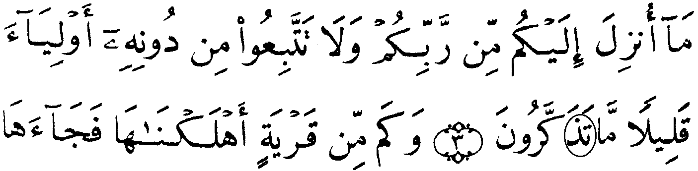 Of course, even if the claim is that it is the Damascus (Syrian) manuscript, ad-Dani has documented where it also differed. In fact, as we are about to look at the topic of ‘readings’ [i.e. the many and varied vocalisations - not just one - of the Qur’an’s text giving rise to differing meanings], this is a good place to note the presence of one such difference between the ‘Syrian’ text (graphic form) and the others as is present also in the Samarqand manuscript. We note that on Page #336 the Samarqand manuscript (as seen at right) has an extra stem in Q7:3, something that is not in the modern version. But this does not make it a ‘scribal error’.