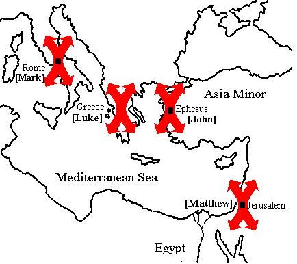 DIAGRAM 10: MAP SHOWING WHERE EACH GOSPEL WAS WRITTEN