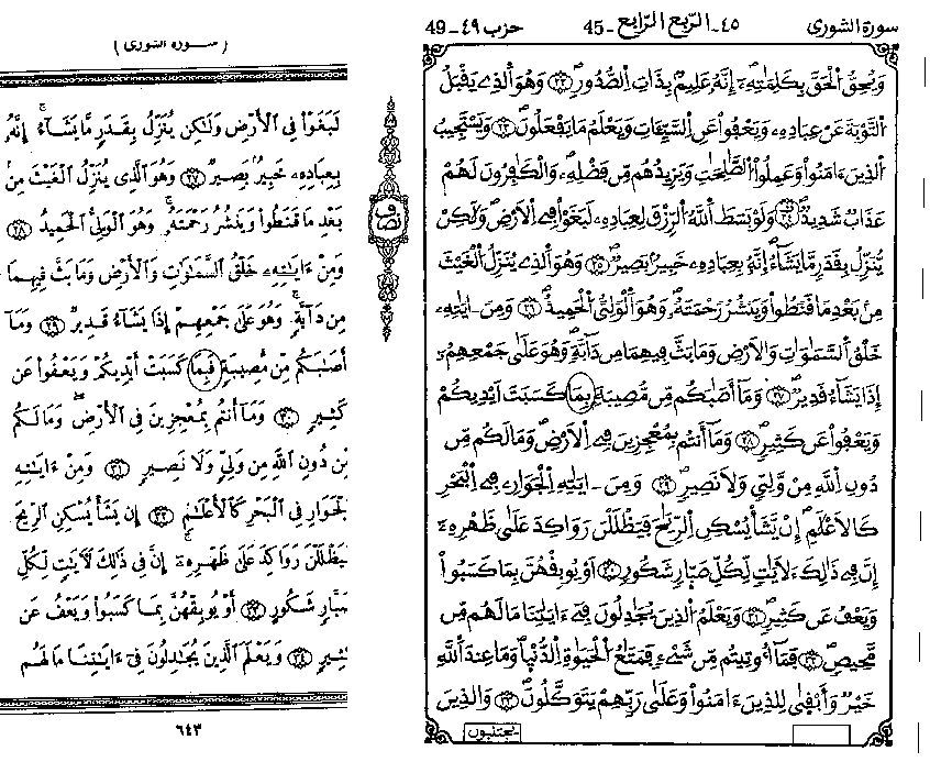 Q42:30 (Hafs) / 28 (Warsh) Left: 1924 Egyptian Edition Hafs Right: 1964 Warsh (Egyptian Print)