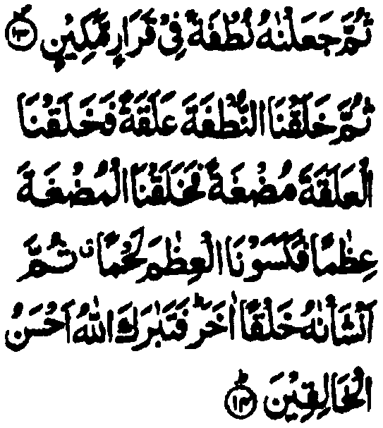 Qur'an: Sura 23:13-14 in Arabic for comparison
