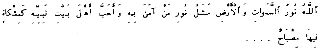 God is the light of the heavens and the earth; the semblance of the light of one who believes in Him and loves the People of the House of His Apostle is as a niche in which is lamp, ...