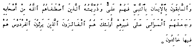 And the foremost in belief in the Prophet are 'Ali and his descendants whom God chose from among the Prophet's Companions and made guardians over others. They are the victorious ones who will inherit the Paradise; in it they will abide forever.
