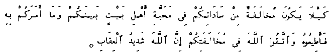 ... so that there be no opposition from your chiefs to the love of the People of the House among you. And whatever he tells you to do obey him and fear God in your opposition, for God is strong in punishing.
